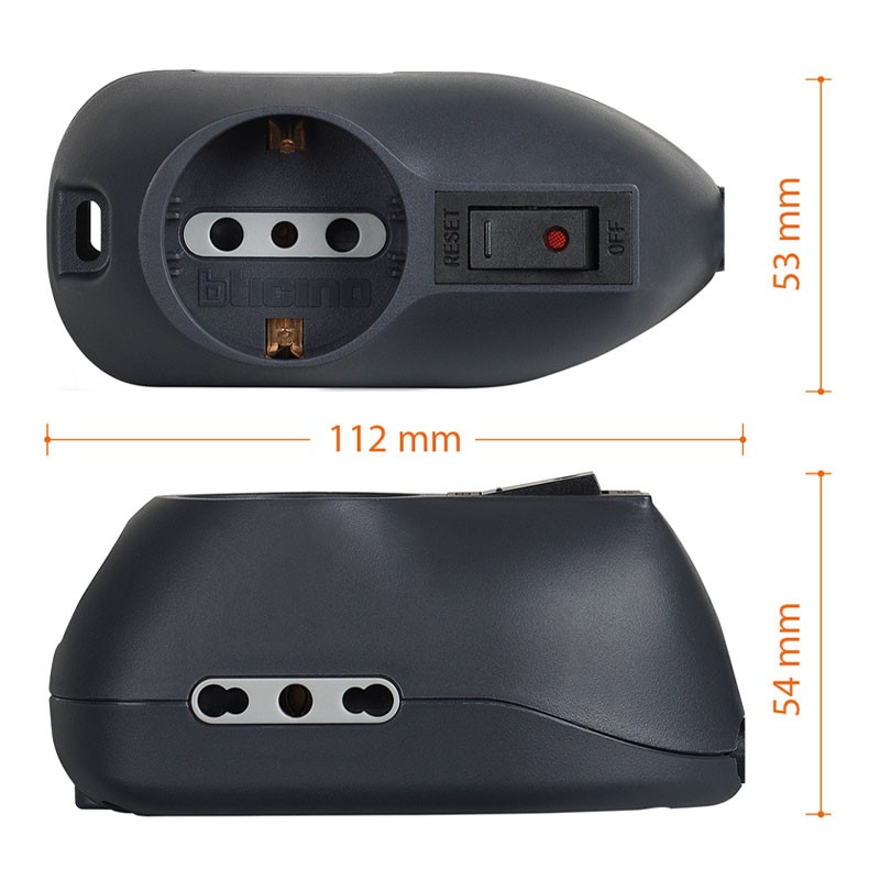 Prise multiple Bticino avec 3 prise allemande et deux prises à 2 broches 10/16A interrupteur anthracite 3693GB