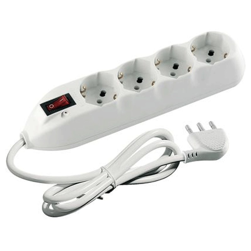 prise de courant de strip Poker - 4 prises 2P+T 16A allemand et italien bouchons 10A et 16A câble, interrupteur lumineux et salvafulmine - fiche 16A - de couleur blanc - montable 110x260mm