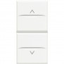 Interrupteur Bticino Axolute double bouton (1-0-2) Blanc. Généralement utilisé pour lever et abaisser les volets roulants. Le bouton reste enfoncé après avoir été pressé.