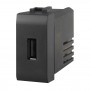 Chargeur USB 2,1A pour smartphones et tablettes, 1 module, couleur gris anthracite. Le chargeur se monte uniquement sur les supports Bticino Axolute. Déjà alimenté, il suffit de le brancher sur le secteur à la maison.