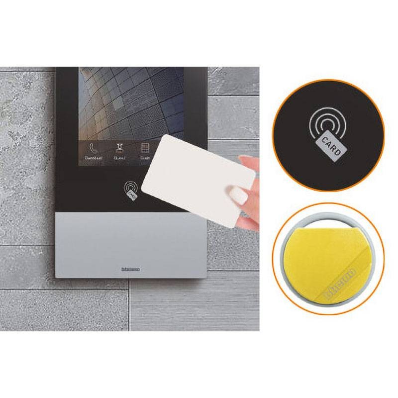 Panneau vidéo externe pour systèmes Bticino Small IP avec écran vertical de 4,3 pouces, reconnaissance faciale et lecteur de badges RFID pour les fonctions de contrôle d'accès.