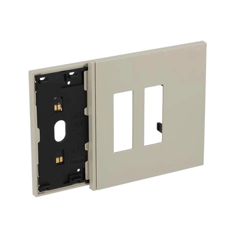 Cadre électrifié avec plaque à double prise Bticino Living Now couleur sable, pour l'installation d'une commande numérique et de 2 prises:
