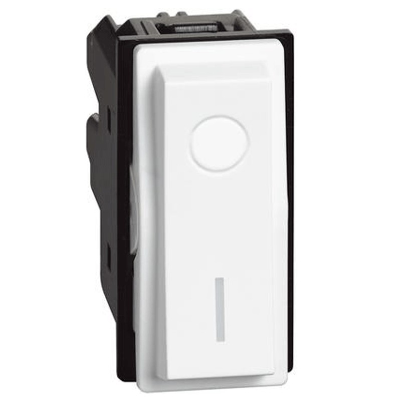 Bipolaire interrupteur Bticino Living Now 2P 16A 250 Va.c. de couleur blanche, 1 module, qui peut être allumée. Le commutateur est généralement utilisé pour les appareils ménagers.