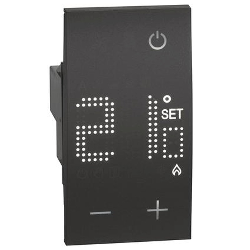 Bticino Living Now thermostat d'ambiance électronique 230V noir, 2 modules, sortie relais avec 1 contact libre de potentiel en déviation 5 (2) A. Alimentation électrique 230 Va.c