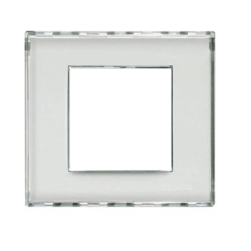 Plaque Bticino LivingLight 2 modules kristall, transparents et personnalisables, pour les dispositifs de contrôle basculants.
