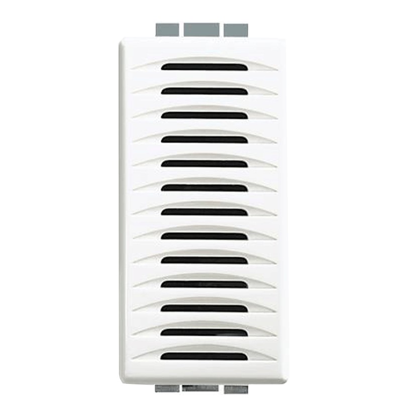 Sonnerie Bticino Luna en bronze 230V 8VA 80dB, couleur blanche. Connectée à un bouton, la sonnerie est généralement utilisée pour la porte d'entrée. Doit être connecté directement au secteur, ne nécessite pas d'alimentation électrique.