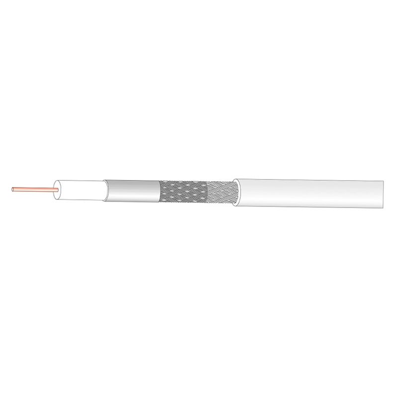 Câble coaxial intérieur Fracarro 6,7 mm avec conducteur intérieur en cuivre (Cu) et tresse en cuivre étamé (CuSn) ; gaine extérieure en PVC blanc et classe CPR Eca.