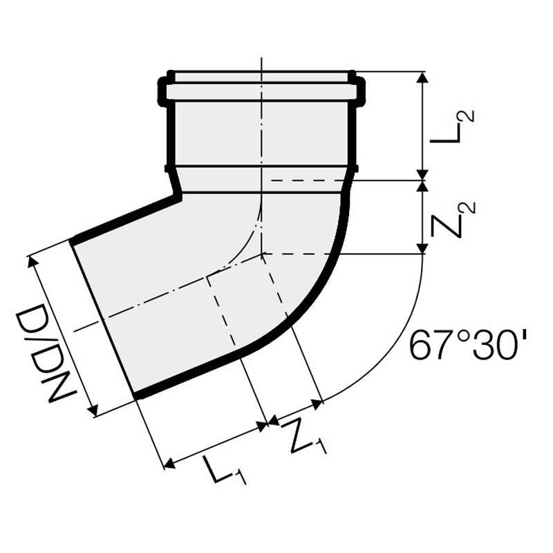 Coude 67 degrés 30’ pour tuyaux d'évacuation insonorisant en PP Polypropylène Valsir Triplus à emboiture avec les caractéristiques suivantes :