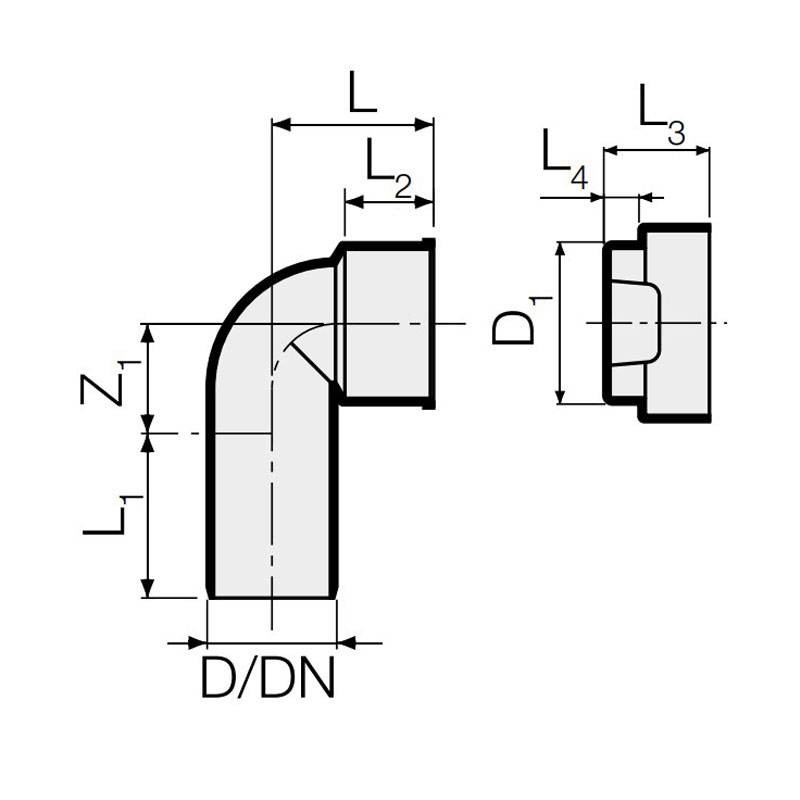Coude technique avec bouchon en PP Valsir PP3 à emboiture D40/46mm VS0518107