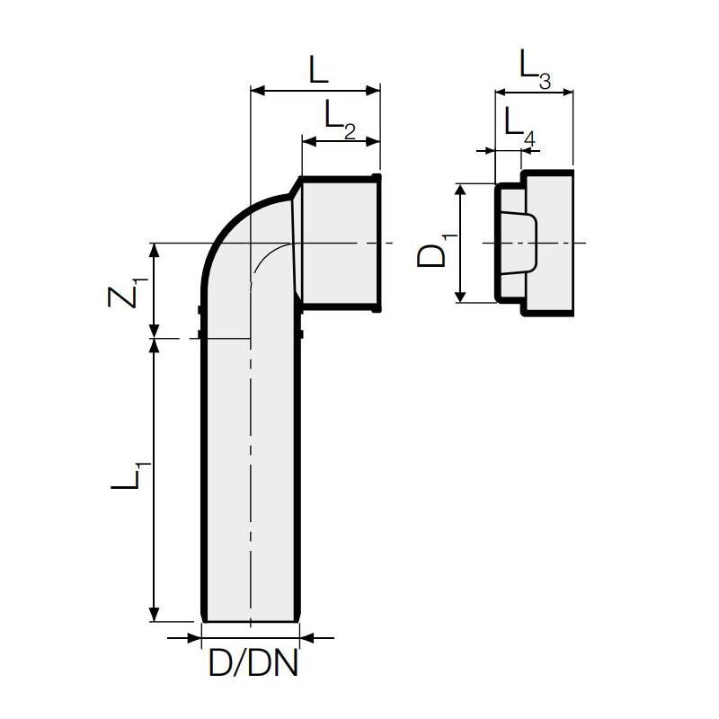 Coude technique prolongé avec bouchon en PP Valsir PP3 à emboiture D40/46mm VS0520104