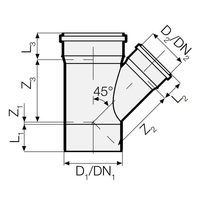 Culotte réduite 45 degrés pour tuyaux d'évacuation insonorisant en PP polypropylène Valsir PP3 à emboiture avec les caractéristiques suivantes :