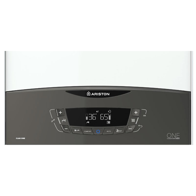 Chaudière à condensation étanche Ariston CLAS ONE 30KW préparée pour la connexion Wi-Fi avec thermostat CUBE S NET (code 3319126). Classe énergétique A, Classe énergétique en sanitaire A, Profil de retrait XL.