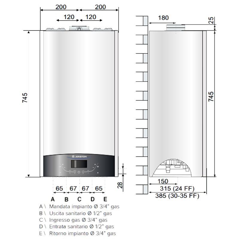 - Entrée de gaz Ø 3/4 gaz