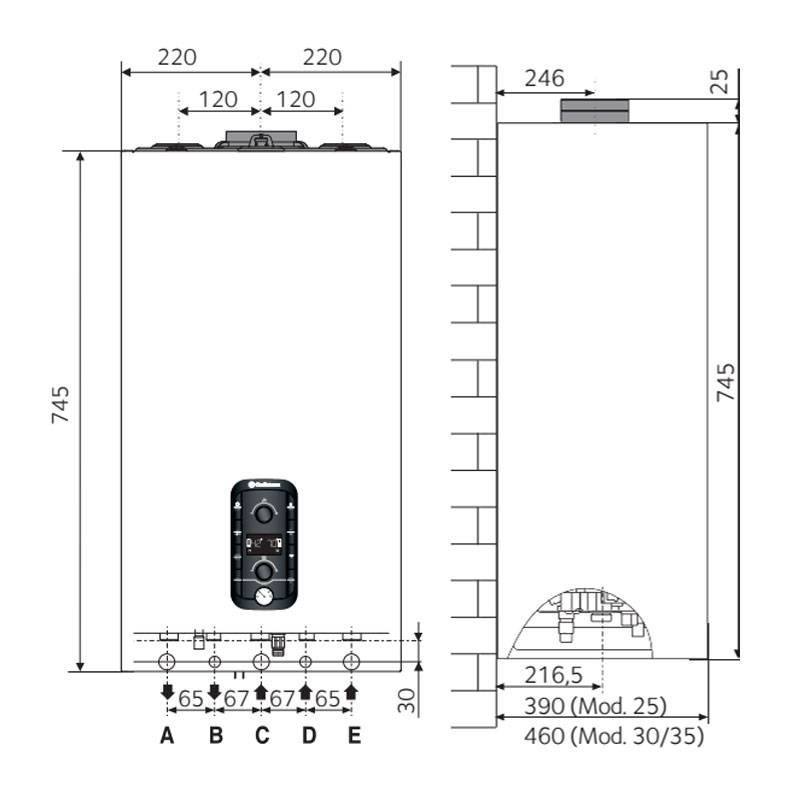 - Débit de chauffage nominal max/min (Hs) Q 24,4 / 2,8 kW