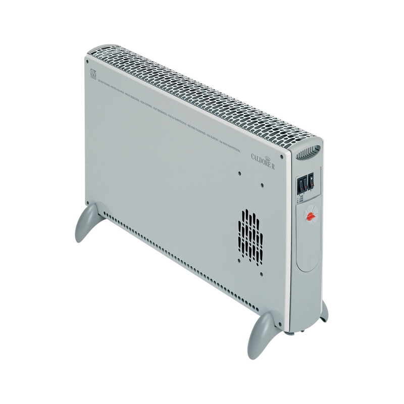 Thermoconvecteur Vortice Série Caldore R Électrique, avec Interrupteurs lumineux pour allumage/extinction et pour choix des 3 puissances électriques (800/1200/2000 W).