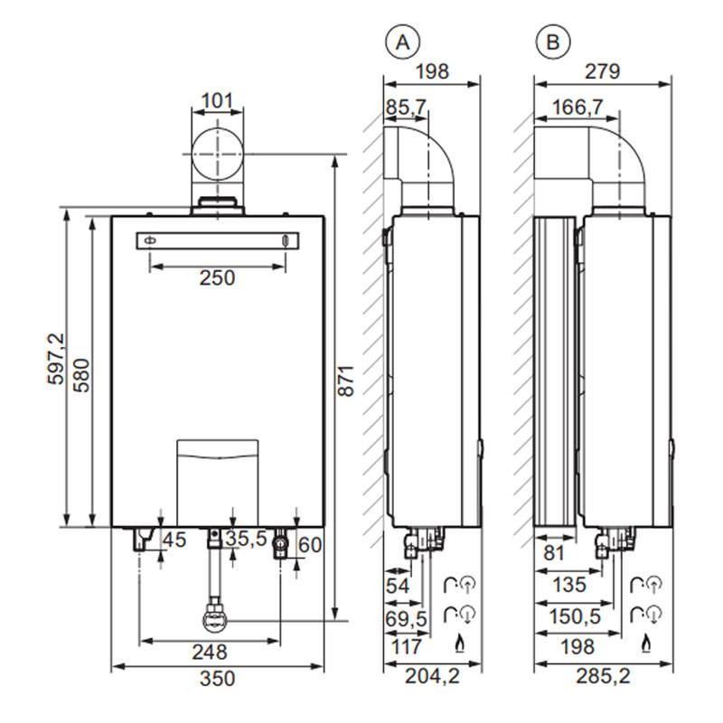 - Diamètre possible de la sortie des fumées 60/100 - 80/125 - 80/80