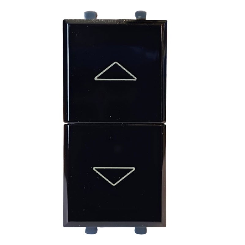 Double bouton 1P NO + 1P NA 10A avec les flèches directionnelles - éclairé (uniquement la version de la Vie Touch) - pas de verrouillage: econsentita la fermeture simultanée des 2 circuits - 1 module de la Série Ave Domus-Système De 44 Module qui peut être installé sur des supports de 44A03 44A04 44A07 et sur tous les articles du Système 44