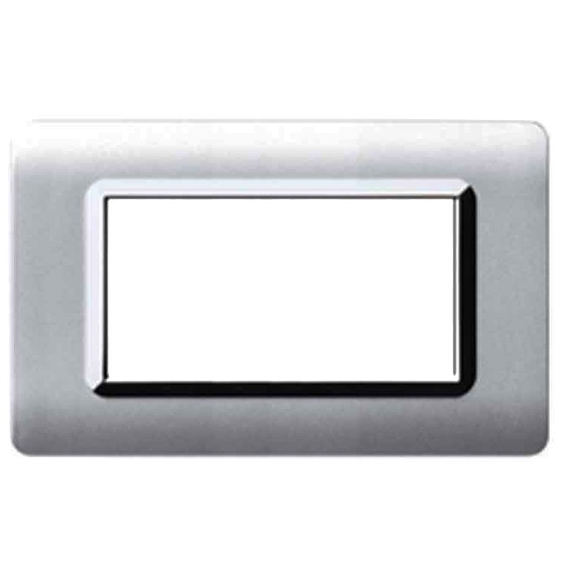 Plaque Ave technopolymère Sistema 44 naturel aluminium chromé cadre 4 modules 44PY04ALS