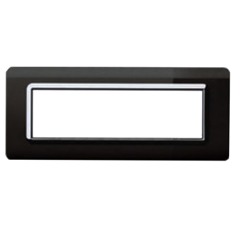 La Plaque de Polymère 44 pour boîte rectangulaire de couleur Noir absolu - cadre chromé - 7-module de Plaques pour les modules de support et Ave sistema 44