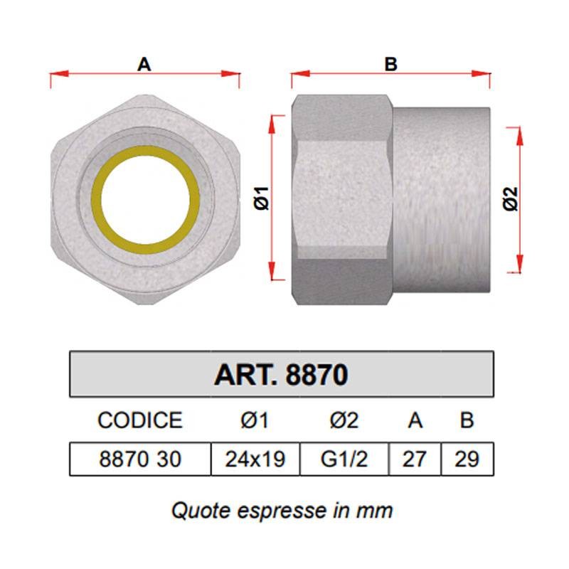 Réduction chromée Far 24X19 1/2" F 30mm 8870 30