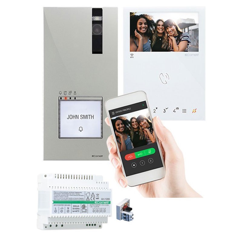 Kit de vidéophone Comelit pour 1 appartement QUADRA MINI WIFI, le kit comprend :