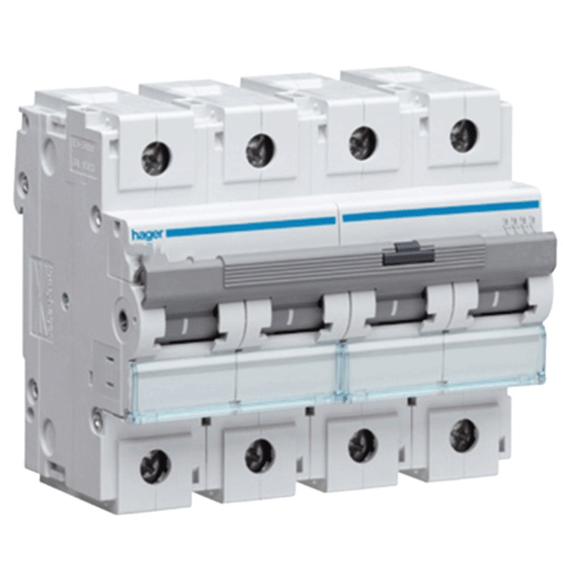 Interrupteur magnétothermique Hager 4P 125A 10KA C 6 module HMF499