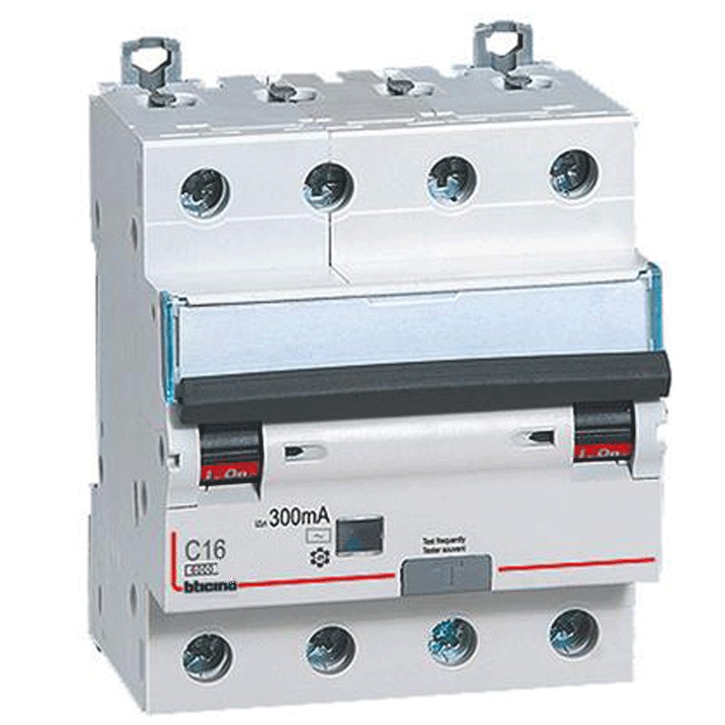 Bticino 4P 16A 300mA AC disjoncteur thermomagnétique différentiel 6kA 4 modules GN8844AC16