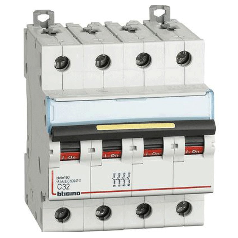 Bticino interrupteur magnétothermique -4P C 32A 16kA 4 modules FT84C32