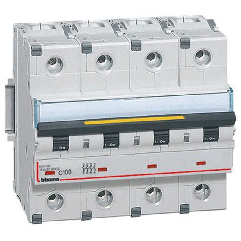 Interrupteur magnétothermique: 6 modules raccord DIN- (attaque universelle pour n'importe quel standard sur le marché) (Marque: Bticino) Pôles (4P) (Ampères: 100) (pouvoir de coupure: 16kA)(Courbe: C)