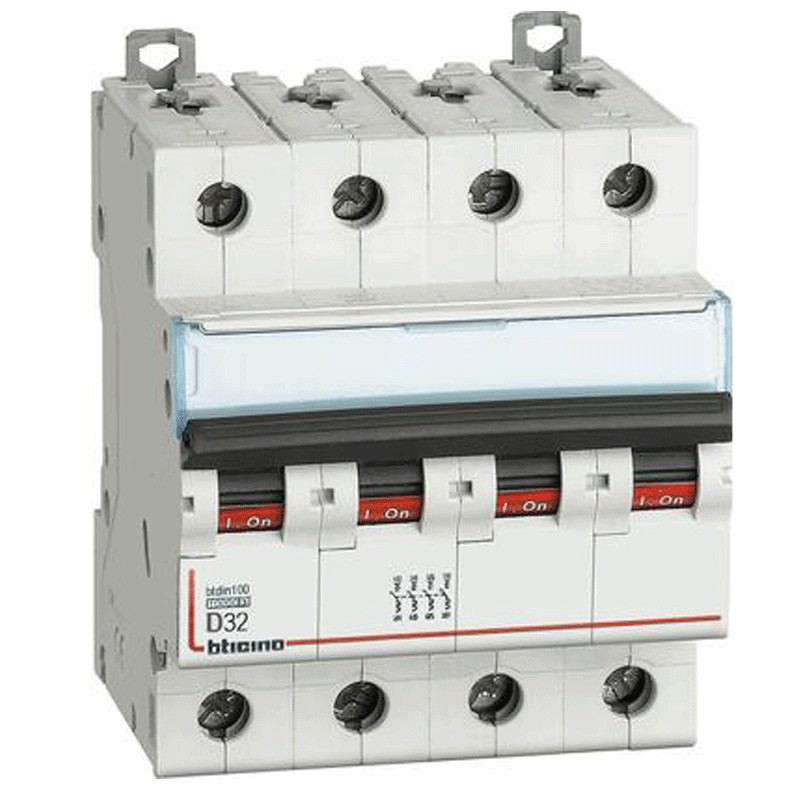 Bticino interrupteur magnétothermique -4P D 32A 10kA 4 modules FH84D32