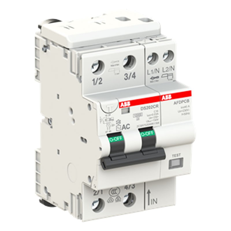 Interrupteur Abb magnétothermique différentiel 2 pôles 16A 30mA AC type 6kA 2 modules DS202CRC16AC30