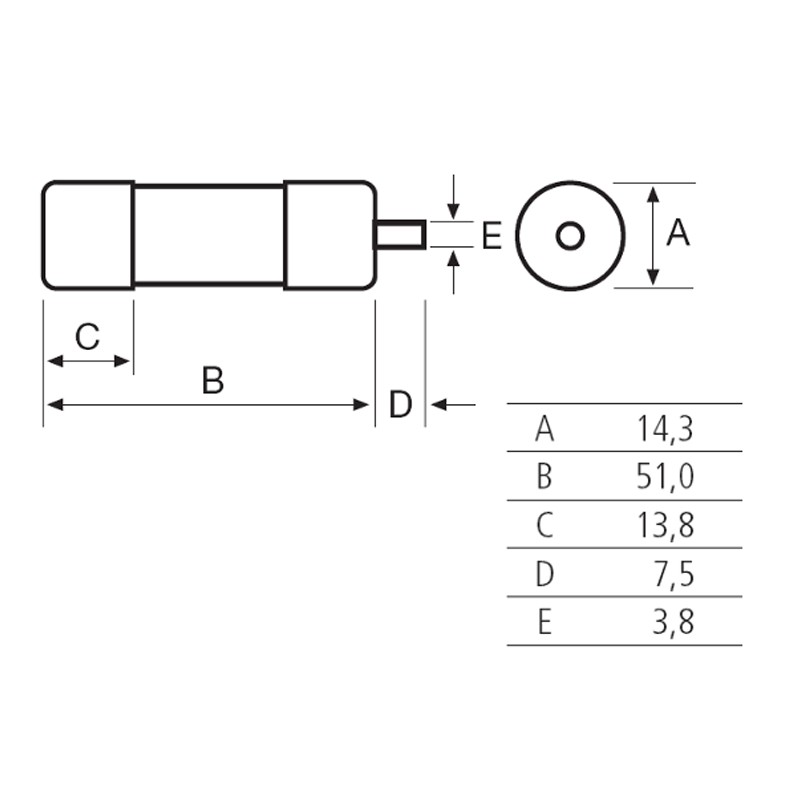 - Dimensions de la jauge à fusibles 14 x 51 mm