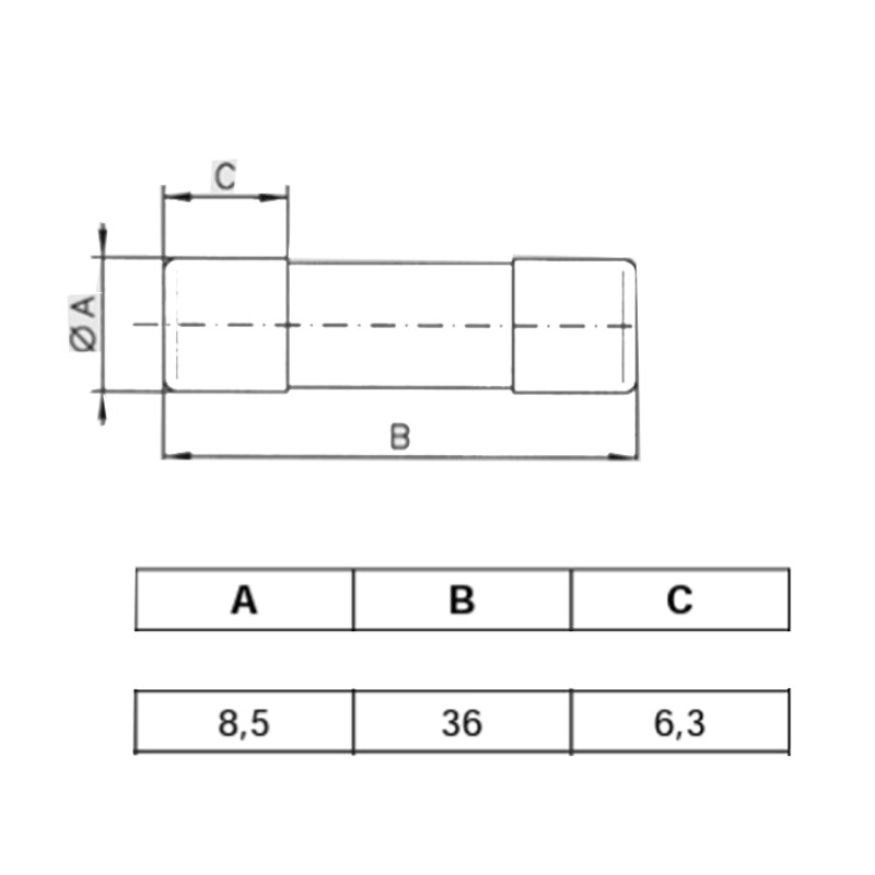- Dimensions de la jauge à fusibles 9 x 36 mm