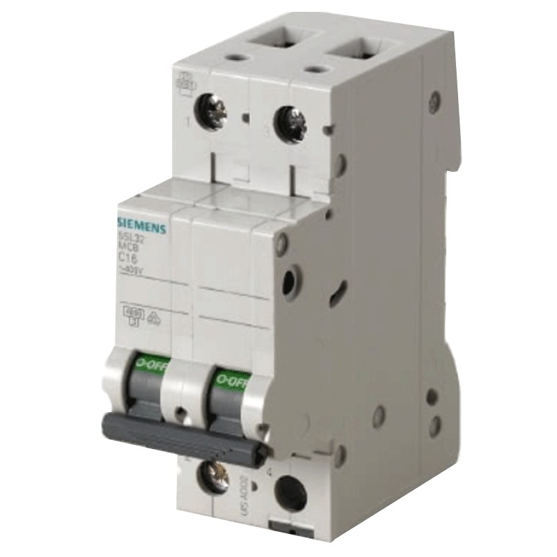 Interrupteur magnétothermique: 2 modules DIN (attaque universelle pour n'importe quel standard sur le marché) (Marque: Siemens) (Pôles: 2P) (Ampères: 16) (pouvoir de coupure:4.5 kA) (Courbe: C)