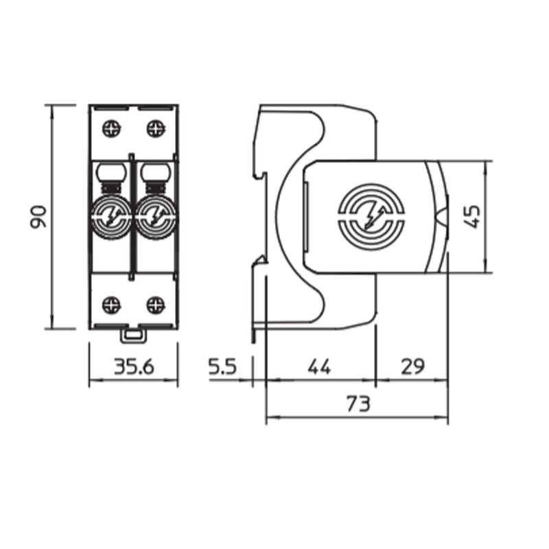 - Capacité de décharge jusqu'à 40 kA (8/20) par pôle grâce à des varistances de haute performance