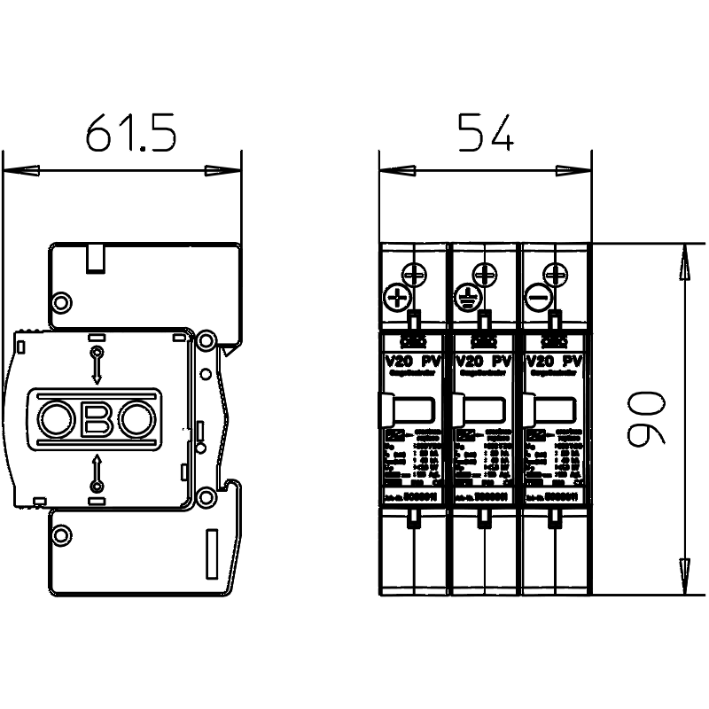 Parafoudre OBO Bettermann V20-C 3PH-600 tripolaire type 2 600V DC 5094605