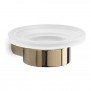 Porte-savon mural Gedy Pirenei en acier inoxydable et cromall, avec récipient en verre dépoli, couleur or poli, dimensions 10,8x11,1x4,2cm.