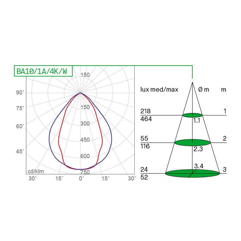 - Avec un faisceau lumineux unidirectionnel de 80°x60°.