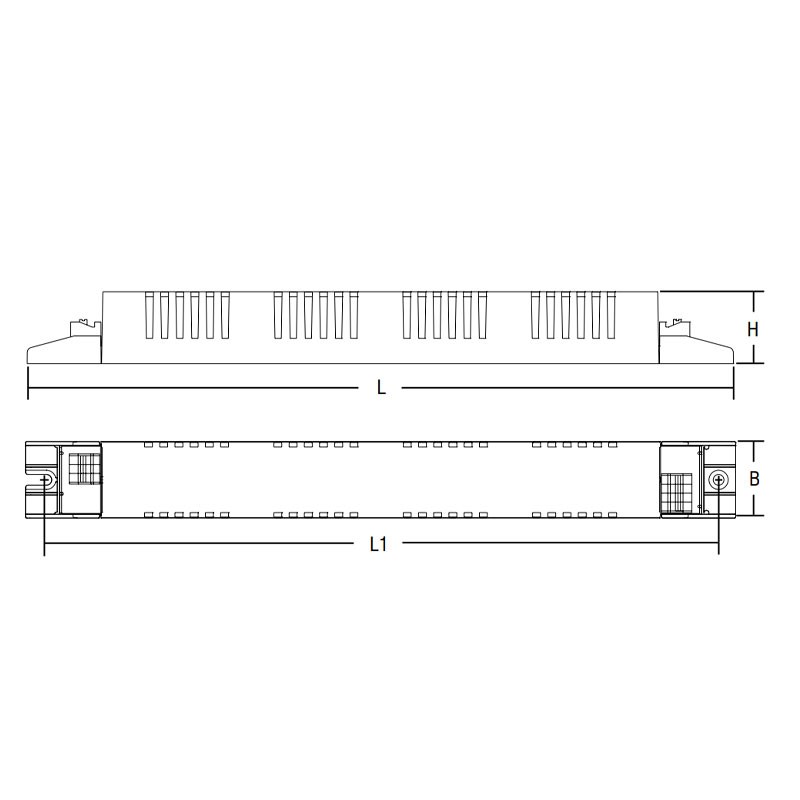 Ballast électronique TCI BTL 258 linéaire multi-lampe/multi-puissance, avec les caractéristiques suivantes