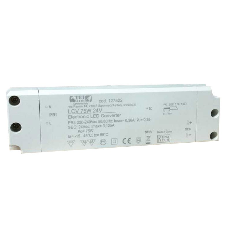 Ballast électronique TCI pour LED 75W 24VDC, en courant continu, degré de protection IP20.