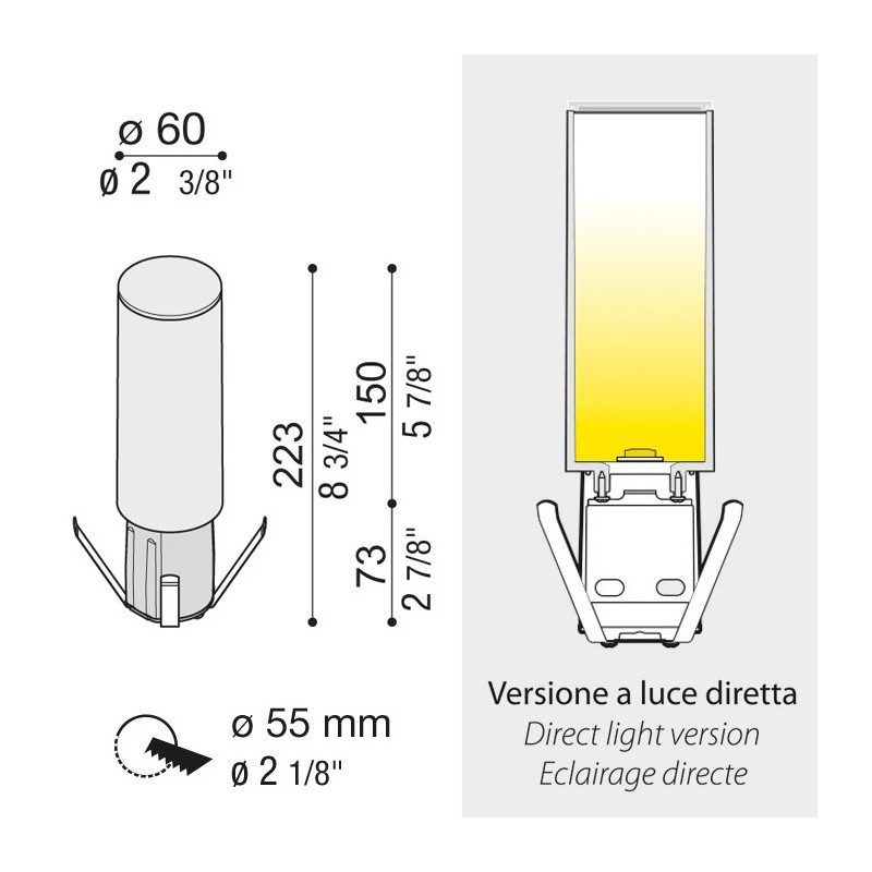 - Dimensions : diamètre 60 - hauteur 223 mm