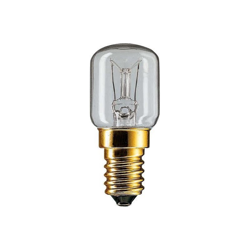 Lampe à tube pour four Philips E14, tension 230V, puissance 25W, lumière chaude 2700K, classe énergétique G.