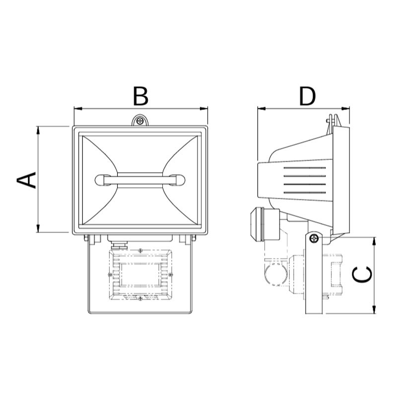 Projecteur halogène Fanton, puissance 150W, indice de protection IP54, avec ampoule puissance 120W, 950 lumens, classe énergétique C.