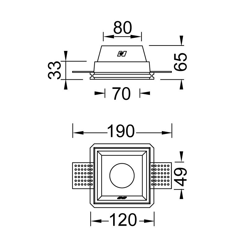 Spotlight construit en Plâtre Noble Carré, de couleur Blanche, pour correspondre à la led avec l'attaque GU5,3/GU10, trou 125x125mm, Lampe incluse, Lampe non incluse, au total de disparition, l'installation dans un plafond en plaques de plâtre. Le corps à la craie.