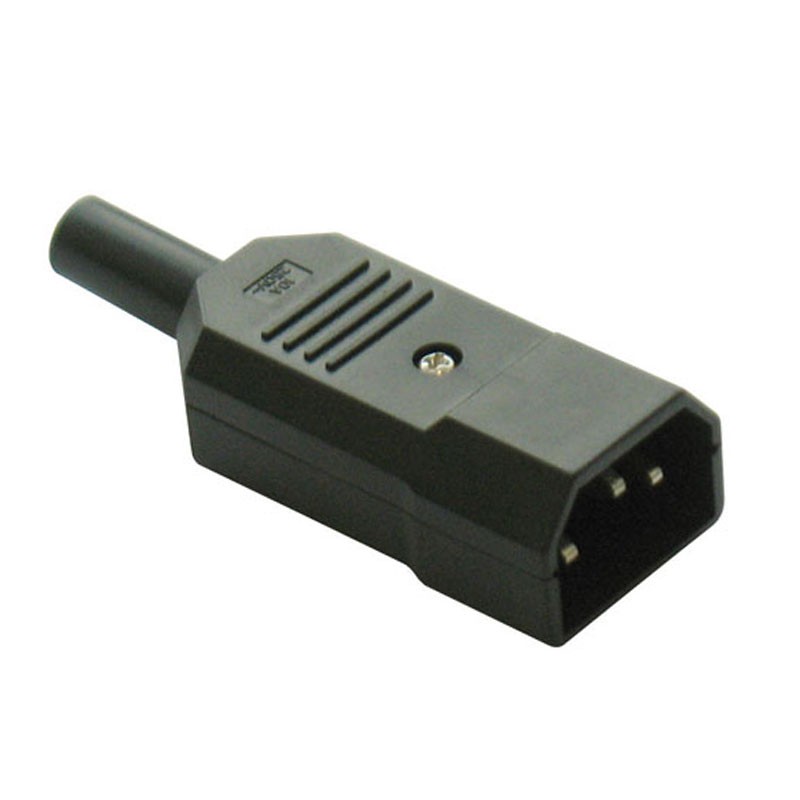 Fiche/prise volante Melchioni FR2829 à trois broches, tension 250 Vac, 10 ampères, corps en bakélite, contacts en laiton nickelé.