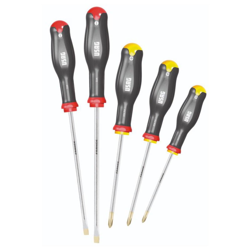 Jeu de tournevis Usag 324 SH5 pour vis à fente et vis à empreinte cruciforme Phillips.