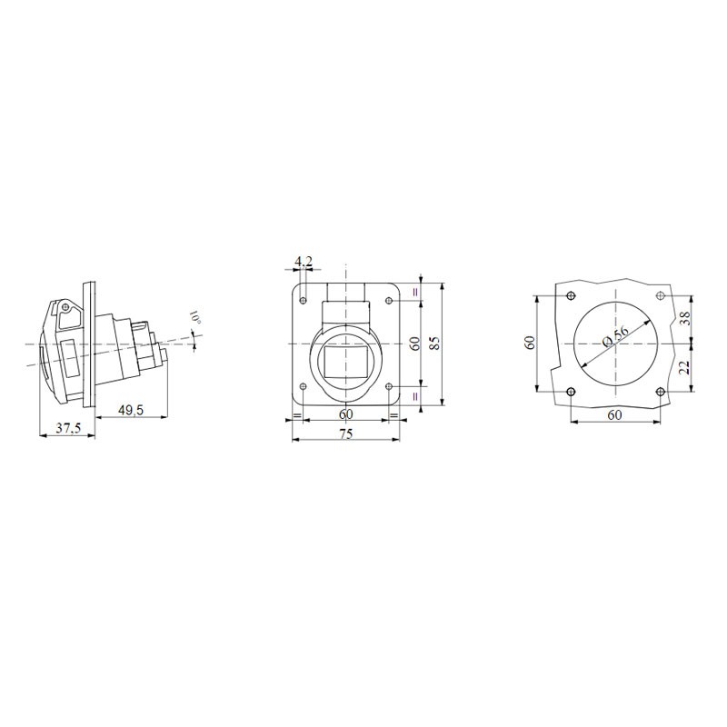 Prise fixe encastrée 10° HP Gewiss , avec les caractéristiques suivantes :
