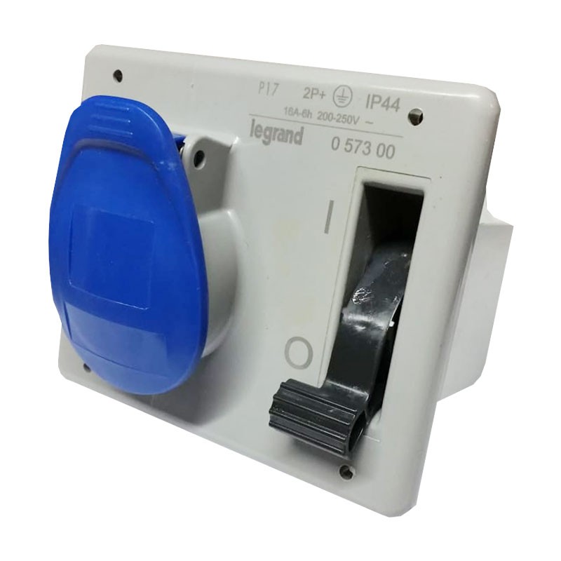 Prise verrouillée Legrand pour panneau 2P+T 2X16A+E 230V IP44 057300