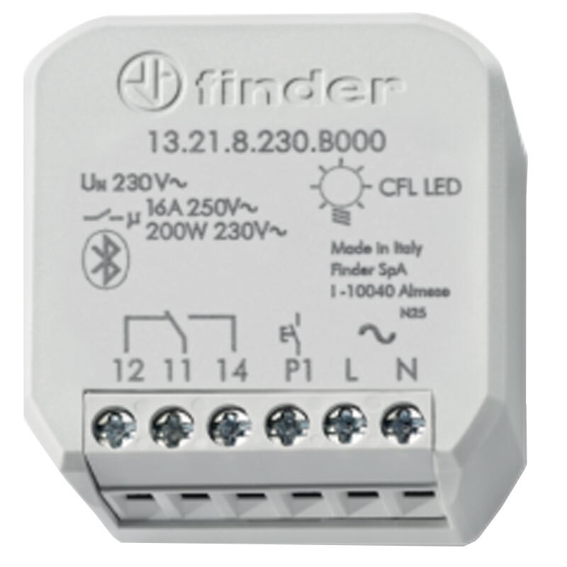 Le relais multifonctions Finder Yesly 16A 250V est un dispositif qui peut être intégré dans le système smart home Finder YESLY. Il est doté d'un contact de 16A, a les mêmes fonctions que le 13.22 et peut être connecté avec un bouton sur la phase et le neutre.