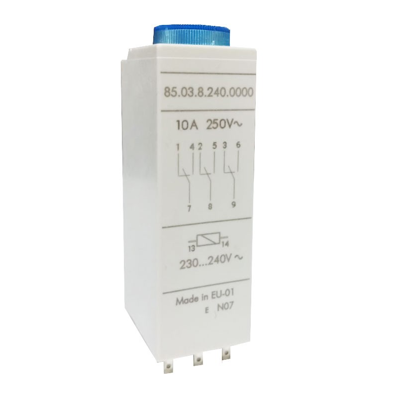 Relais enfichable/minuteur Finder Type 85.03 multifonctionnel, avec les caractéristiques suivantes :